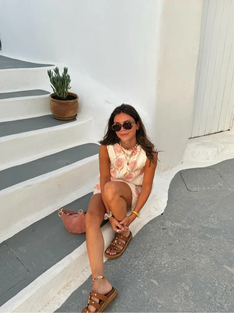 Discover the Anne Dress, a floral print side split mini dress perfect for summer. This women's fashion O-neck sleeveless short dress offers a casual yet elegant look, ideal for high streetwear. Add a touch of fashionable flair to your wardrobe with this versatile and trendy dress.