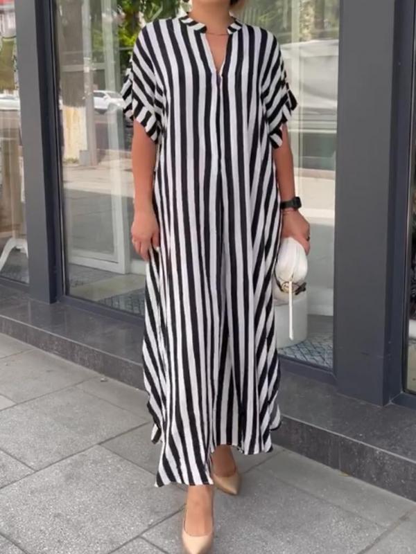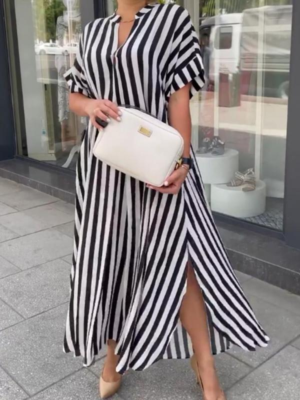 This dress is all about timeless style and versatility. With its simple yet stylish striped pattern, this dress is perfect for any occasion. It's designed to flatter your figure while keeping you comfortable. Made from high-quality, lightweight fabric, this dress is breathable and easy to wear. Whether you're going out with friends or to a formal event, this dress has you covered.