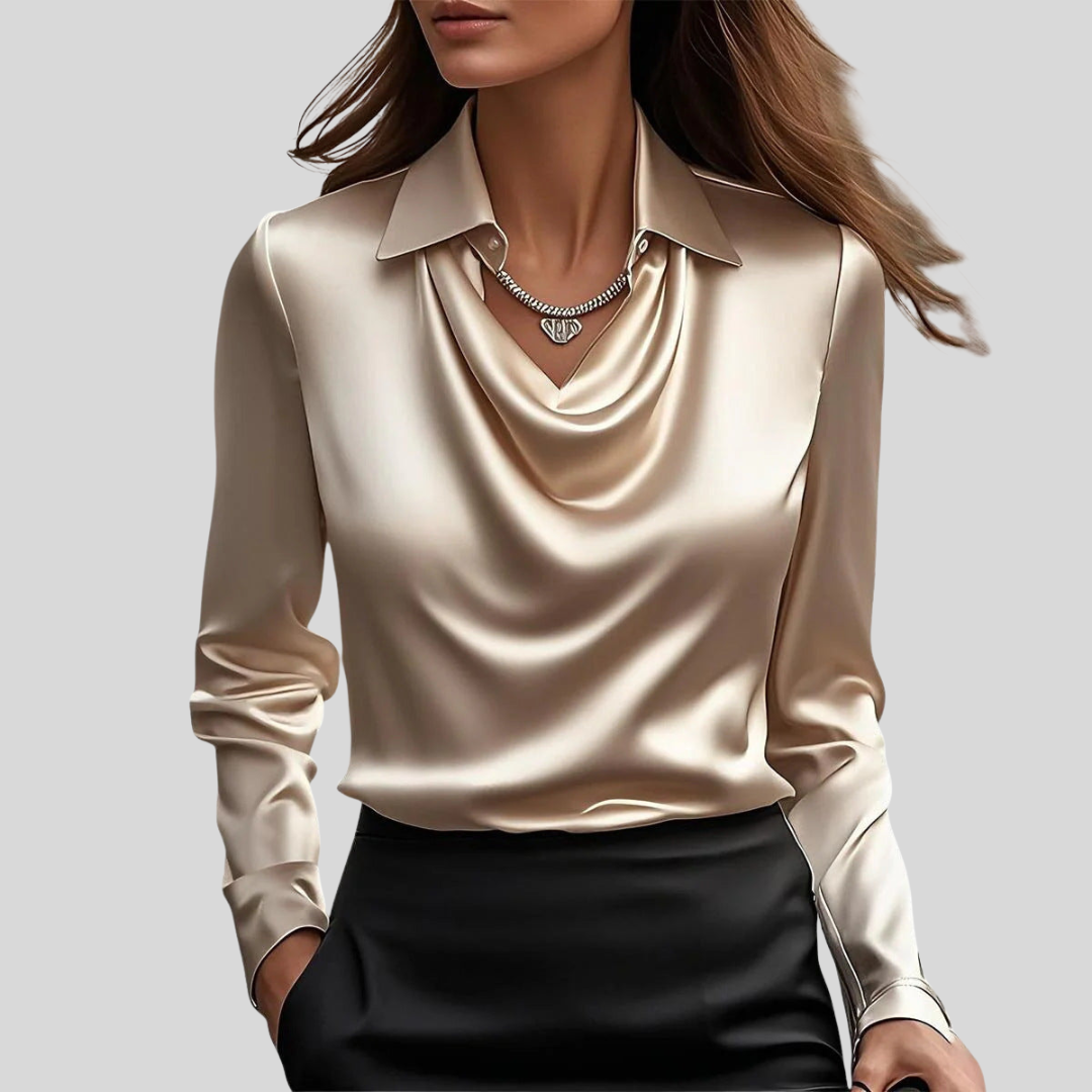 • Glossy Fabric — Smooth, luminous fabric with a soft touch that enhances the blouse’s elegant, elevated appeal.